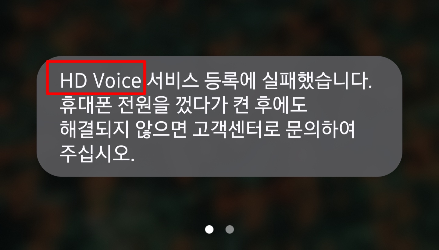 HD voice 서비스 등록에 실패했습니다 해결방법 (에이닷 전화 오류)