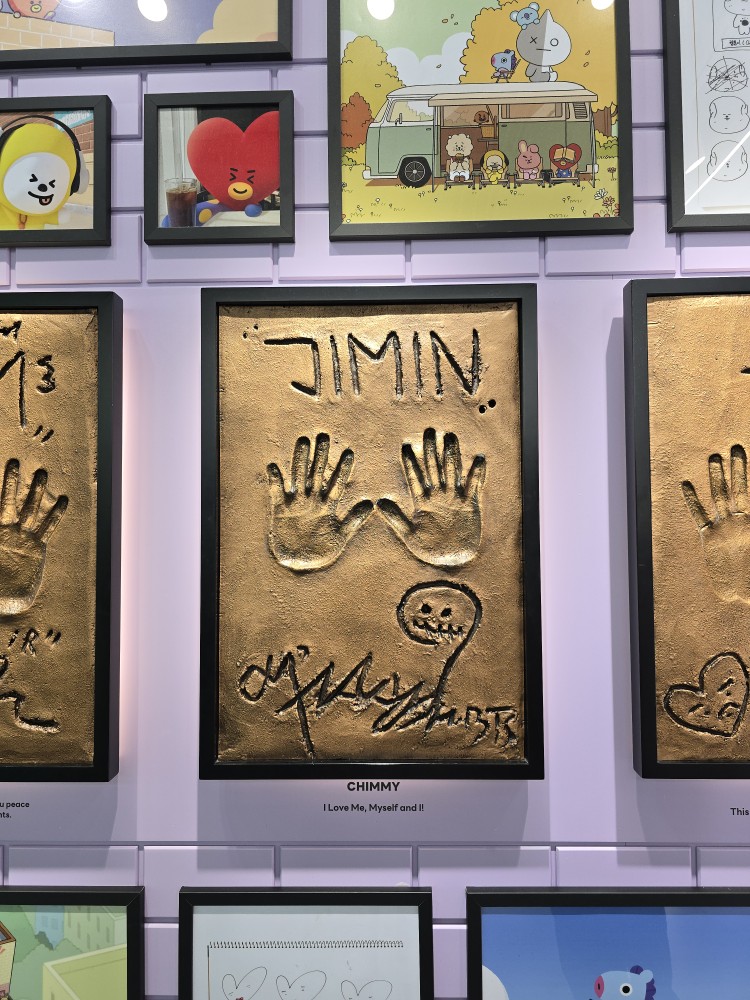 내 시선을 사로잡은 것은 BTS (방탄소년단) 멤버들의 손도장 (핸드프린팅) 이 있었던 보라색 벽 코너.